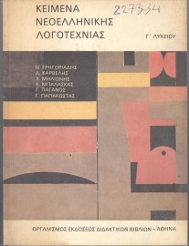 ΚΕΙΜΕΝΑ ΝΕΟΕΛΛΗΝΙΚΗΣ ΛΟΓΟΤΕΧΝΙΑΣ-Γ´ ΛΥΚΕΙΟΥ-Ν. ΓΡΗΓΟΡΙΑΔΗΣ, Δ. ΚΑΡΒΕΛΗΣ, Χ. ΜΗΛΙΩΝΗΣ, Κ. ΜΠΑΛΑΣΚΑΣ, Γ. ΠΑΓΑΝΟΣ, Γ. ΠΑΠΑΚΩΣΤΑΣ