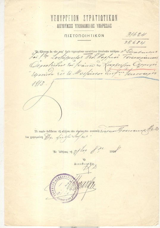 ΥΠΟΥΡΓΕΙΟΝ ΣΤΡΑΤΙΩΤΙΚΩΝ ΔΙΕΥΘΥΝΣΙΣ ΥΓΕΙΟΝΟΜΙΚΗΣ ΥΠΗΡΕΣΙΑ ΠΙΣΤΟΠΟΙΗΤΙΚΟΝ