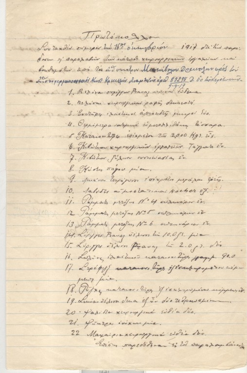 ΠΡΩΤΟΚΟΛΛΟ ΠΑΡΑΛΑΒΗΣ ΝΟΣΟΚΟΜΕΙΑΚΩΝ ΥΓΕΙΟΝΟΜΙΚΟΥ ΥΛΙΚΟΥ Α´ ΠΑΓΚΟΣΜΙΟΣ (1917