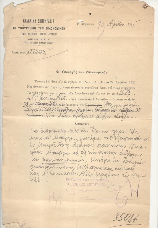 ΑΠΟΝΟΜΗ ΣΥΝΤΑΞΗΣ ΜΙΚΡΑ ΑΣΙΑ 1925
