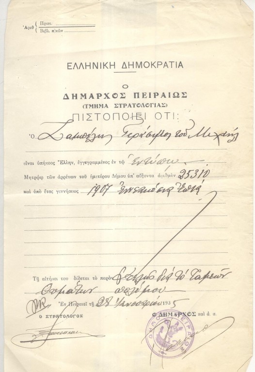 ΠΙΣΤΟΠΟΙΗΤΙΚΟ ΕΛΛΗΝΙΚΗΣ ΥΠΗΚΟΟΤΗΤΑΣ 1935